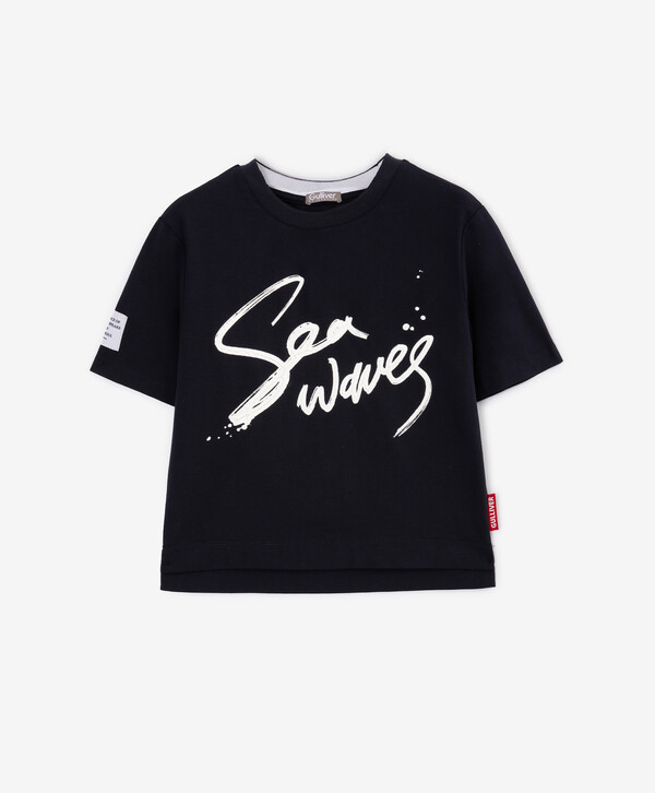 Футболка с оригинальным принтом синяя для мальчика Gulliver (128) детям