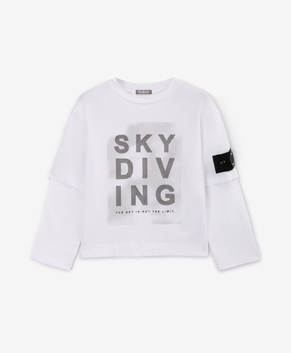 Лонгслив, имитирующий многослойность белый для мальчика Gulliver (116) детям