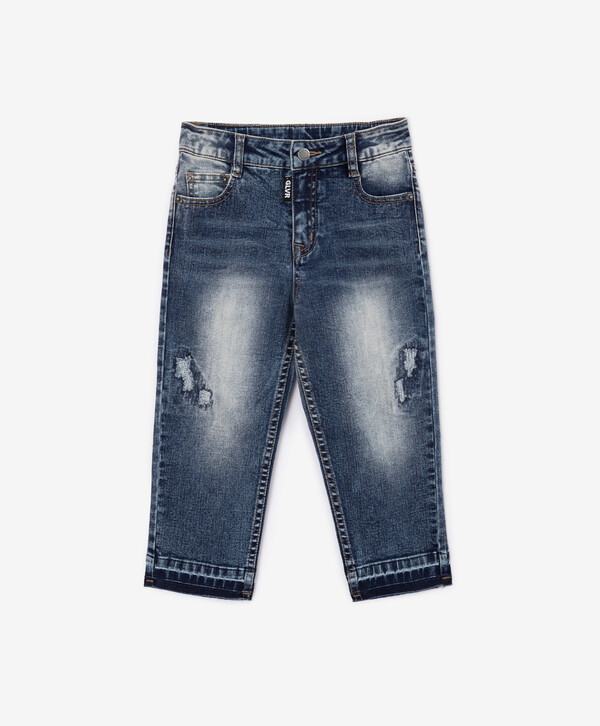 Джинсы с варкой, потертостями, повреждениями, имитацией распоротых швов синие для девочек Gulliver (134) детям