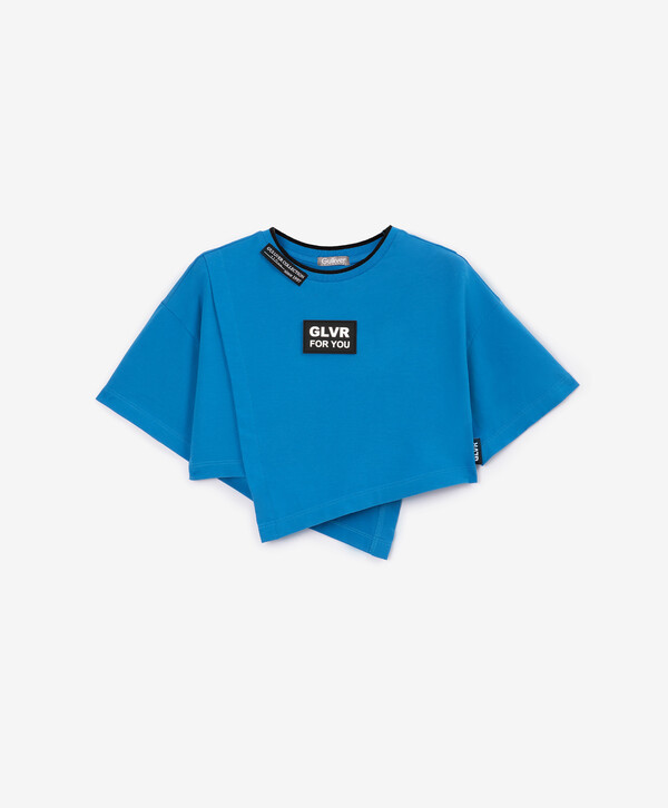Футболка укороченная с неровной линией низа синяя для девочки Gulliver (104) детям