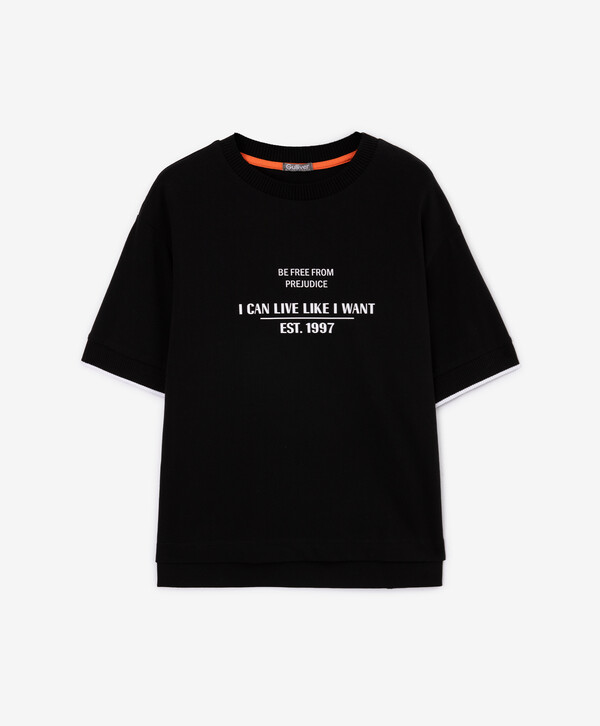 Футболка с горловиной и манжетами из риба черная для мальчика Gulliver (170)