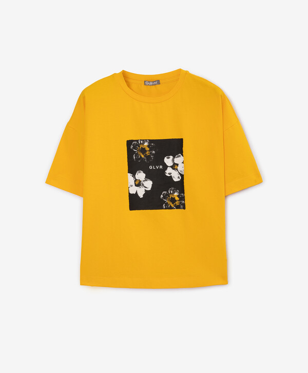 Футболка оверсайз с рисунком желтая для девочки Gulliver (170) 12407GJC1211