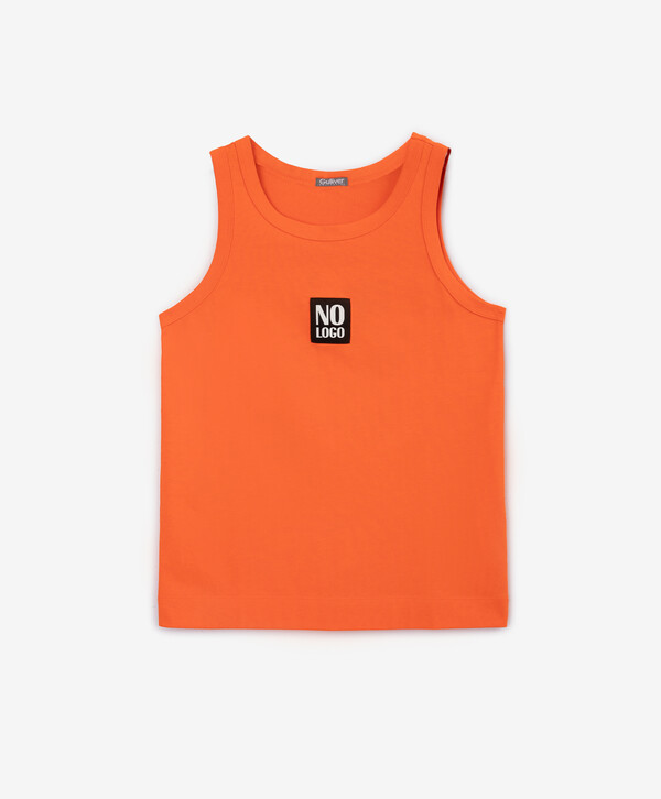 Майка яркая с контрастным декором оранжевая для мальчика Gulliver (164) детям