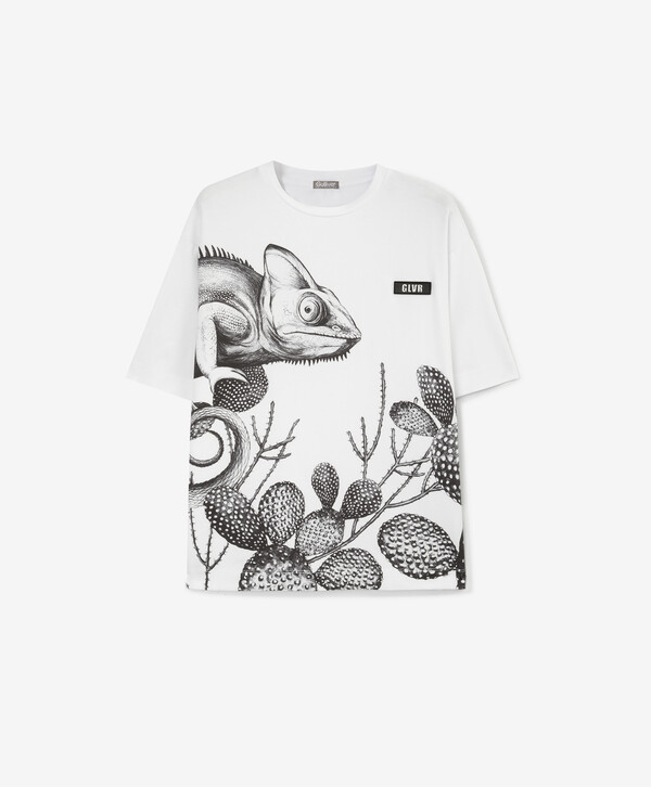 Футболка с оригинальным принтом белая для мальчика Gulliver (152) детям