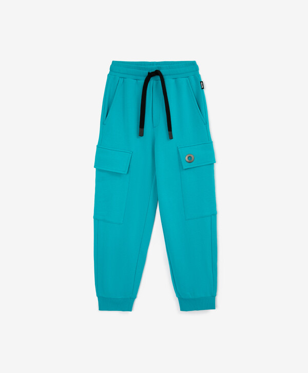 Брюки из футера с карманами-карго голубые для мальчика Gulliver (140) детям