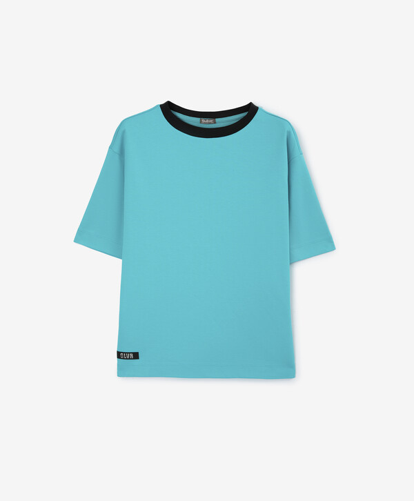 Футболка с контрастной горловиной голубая для мальчика Gulliver (152) 12410BJC1211