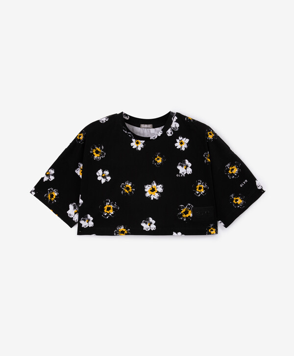 Футболка укороченная с цветочным рисунком белая для девочки Gulliver (140)