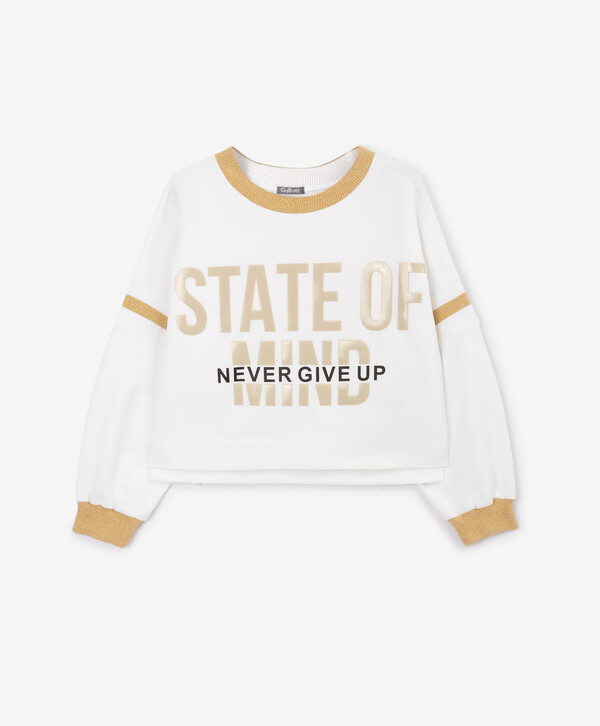Толстовка силуэта оверсайз с отделкой цвета светлое золото белая для девочки Gulliver (158)