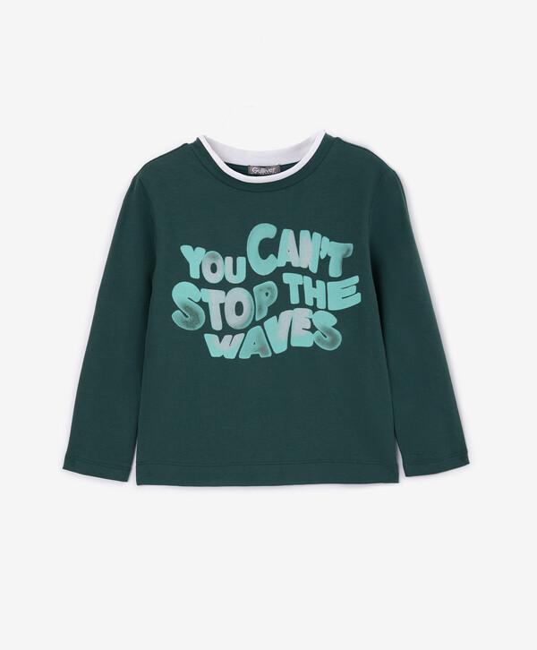 Футболка с длинным рукавом серая для мальчика Gulliver (128)