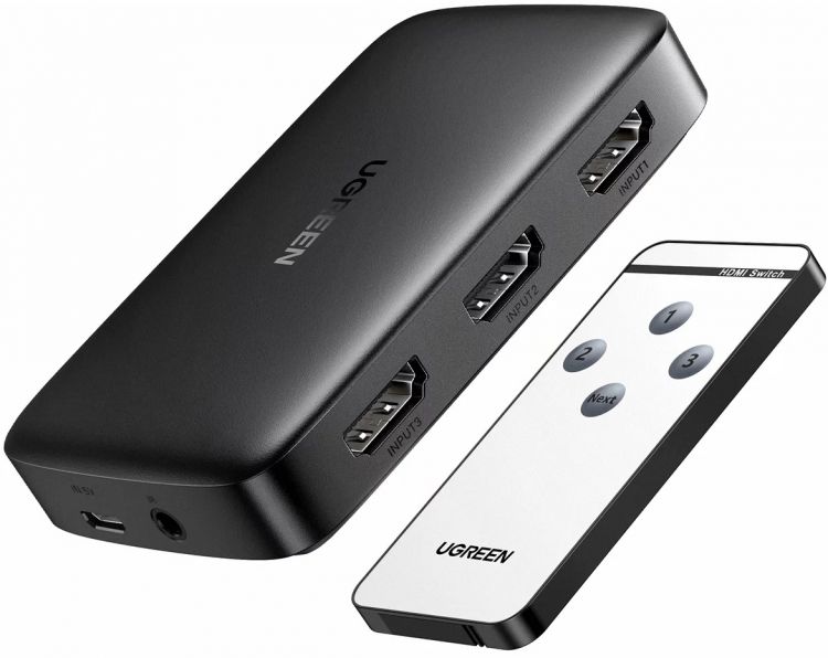 Переключатель UGREEN HDMI позволяет подключать 3 хост-устройства HDMI к 1 дисплею/телевизору/проектору HDMI для переключения, идеально подходит для Xbox/Xbox 360/One, PS4/PS3, Nintendo Switch / Wii, проигрыватель Blu-ray, DVD, Roku TV Stick, ПК.