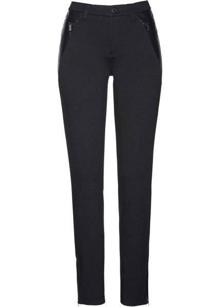 Зимняя модель со вставками из искусственной кожи. По 2 кармана с окантовкой и застежкой на молнию спереди и сзади. Боковые молнии по краям брючин. Длина по внутреннему шву ок. 73,5 см (разм. 42). Машинная стирка.