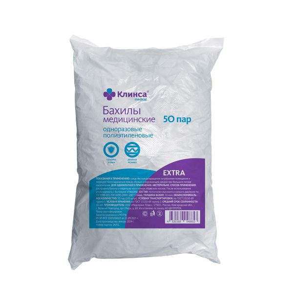Бахилы одноразовые медицинские синие полиэтиленовые Экстра Клинса 30мкм 50 пар Медсервис Плюс ООО