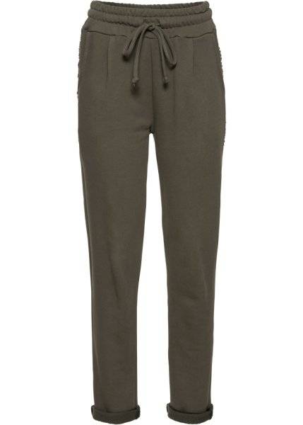 Брюки Loose Fit с пайетками (оливковый) bonprix для женщин
