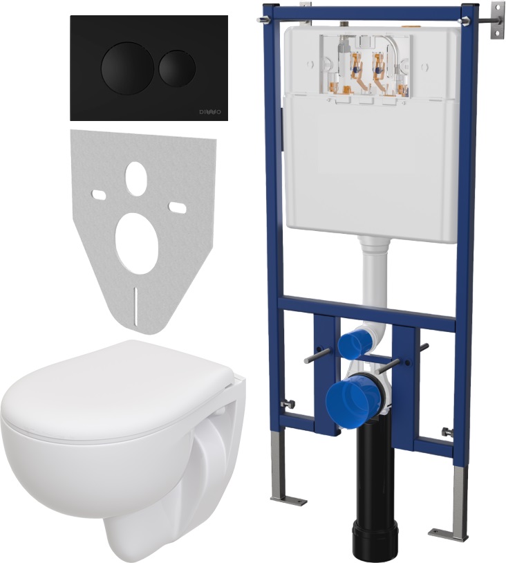 Комплект Унитаз подвесной Seramiksan Natura A051041H + Инсталляция DIWO 4501 + Кнопка смыва 7313 черная матовая A051041H + DIWO 4501 + 7313