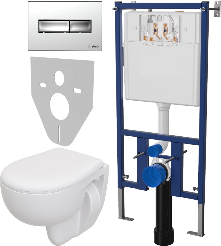 Комплект Унитаз подвесной Seramiksan Natura A051041H + Инсталляция DIWO 4501 + Кнопка смыва 7322 хром A051041H + DIWO 4501 + 7322