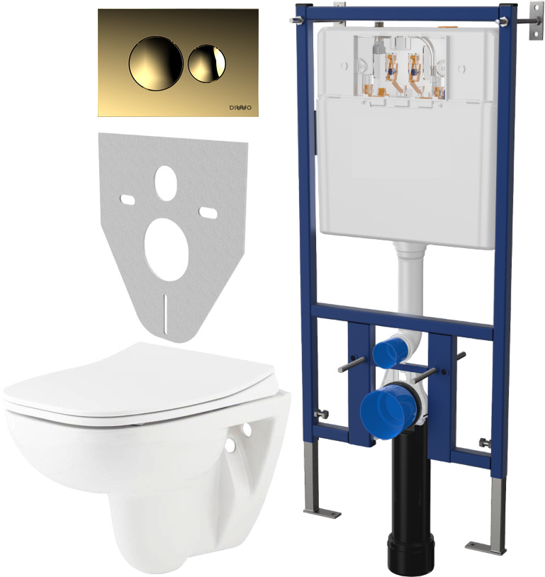 Комплект Унитаз подвесной Seramiksan Petite A101002H + Инсталляция DIWO 4501 + Кнопка смыва 7315 золото A101002H + DIWO 4501 + 7315