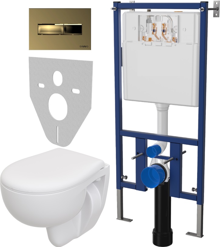 Комплект Унитаз подвесной Seramiksan Natura A051041H + Инсталляция DIWO 4501 + Кнопка смыва 7325 золото A051041H + DIWO 4501 + 7325