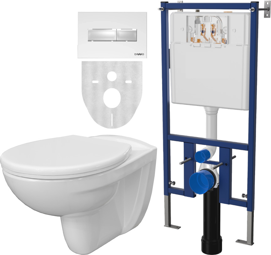 Комплект Унитаз подвесной DIWO Анапа безободковый + инсталляция 4501 + крышка 803-003-709 с микролифтом + кнопка 7320 белая Анапа + 4501 + 803-003-709 + 7320