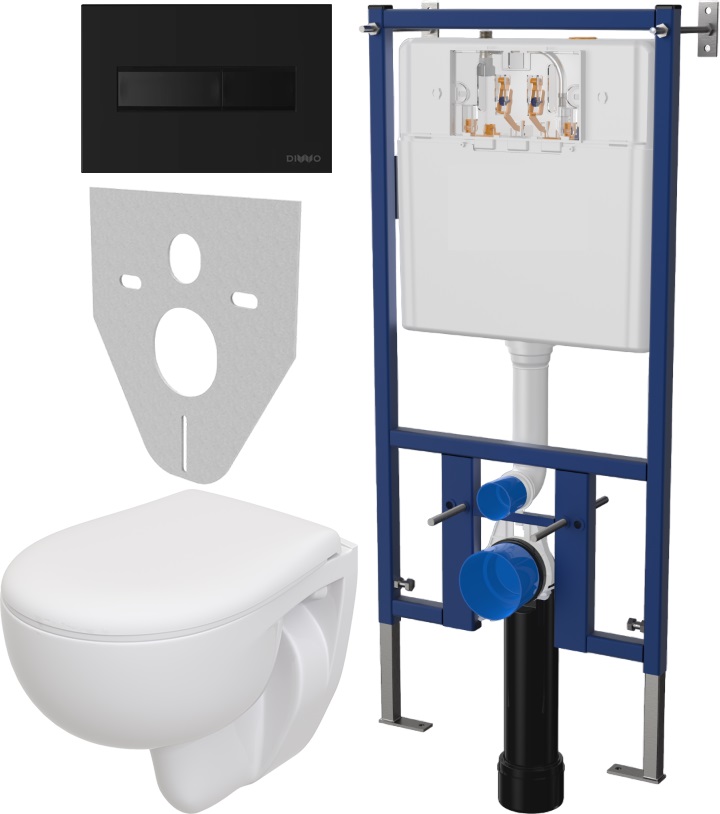 Комплект Унитаз подвесной Seramiksan Natura A051041H + Инсталляция DIWO 4501 + Кнопка смыва 7323 черная матовая A051041H + DIWO 4501 + 7323