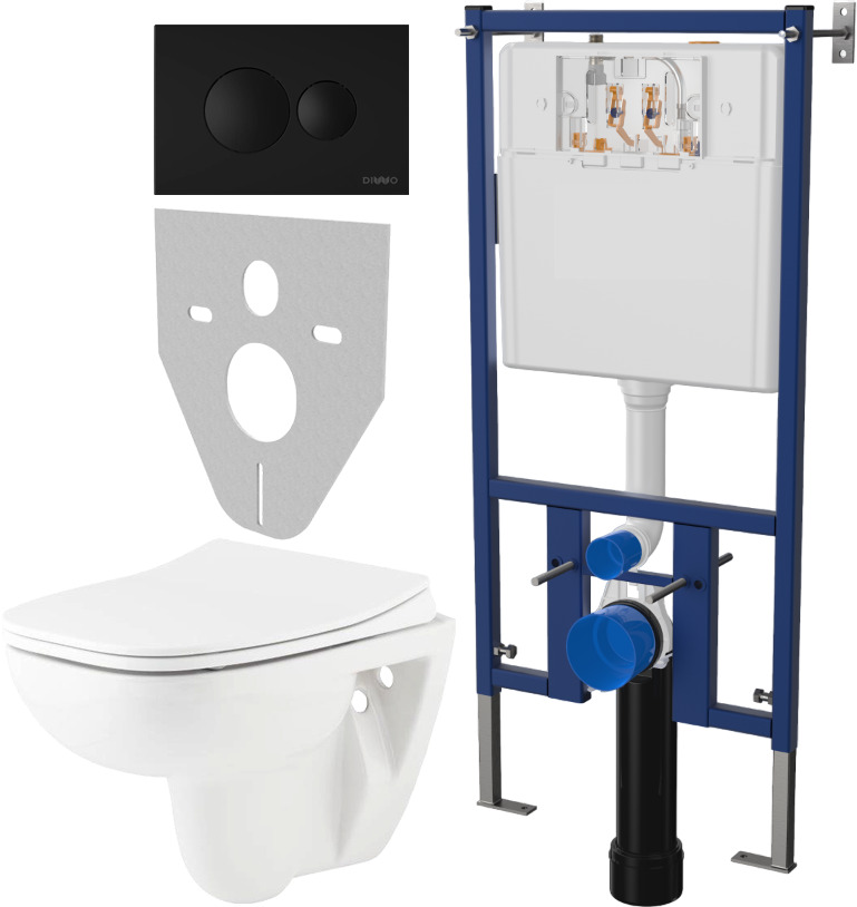 Комплект Унитаз подвесной Seramiksan Petite A101002H + Инсталляция DIWO 4501 + Кнопка смыва 7313 черная матовая A101002H + DIWO 4501 + 7313