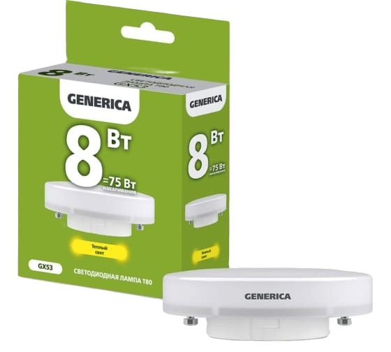 Лампа светодиодная GENERICA T80 8Вт таблетка 3000К GX53 230В LL-T80-08-230-30-GX53-G