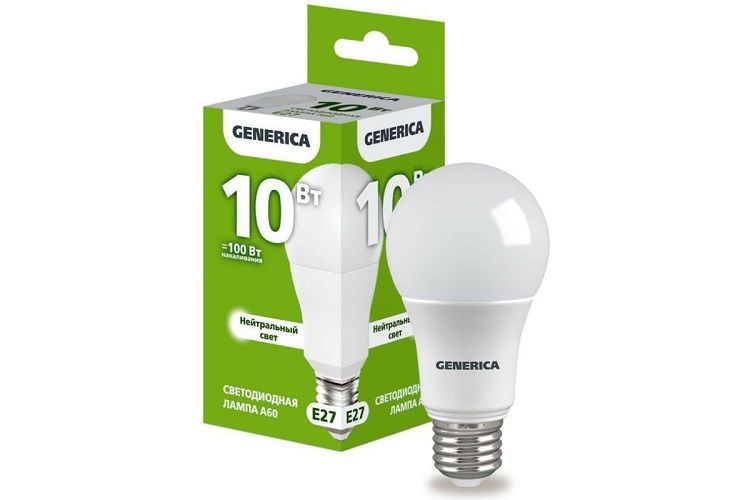 Лампа светодиодная IEK Generica Е27 10 Вт 4000 К груша матовая — это осветительное устройство, которое используется для создания искусственного света в помещениях.