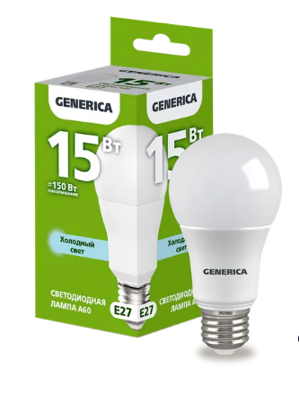 Лампа светодиодная GENERICA A60 15Вт грушевидная 6500К E27 230В LL-A60-15-230-65-E27-G