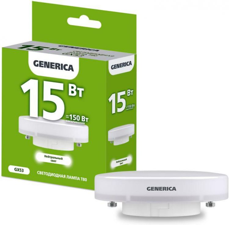 Лампа светодиодная GENERICA T80 15Вт таблетка 4000К GX53 230В LL-T80-15-230-40-GX53-G
