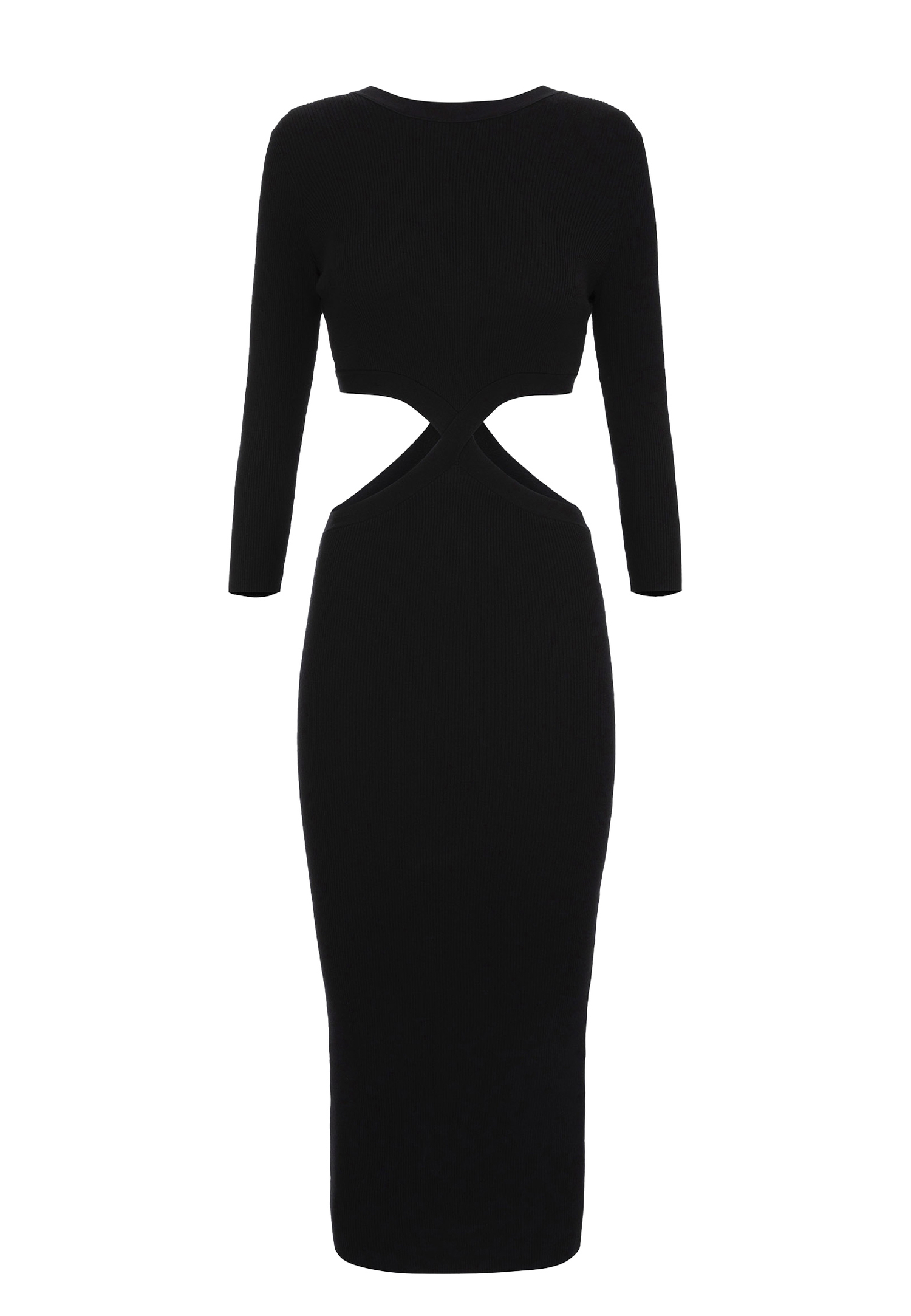 Несмотря на строгий черный цвет и полное отсутствие декора, платье длины миди из новой коллекции ELISABETTA FRANCHI выглядит женственно и очень соблазнительно. Правильное настроение модели дизайнеры задали при помощи провокационных фигурных вырезов. За безупречность посадки отвечает трикотаж, который плотно прилегает к телу и при этом отлично тянется, не сковывая движения. Это платье станет удачным выбором для создания вечернего ансамбля.