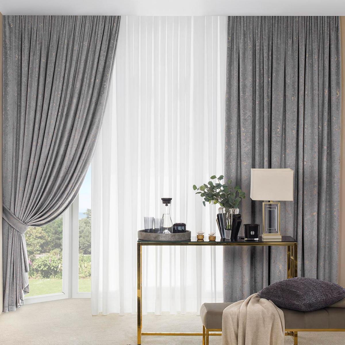 Бархатные шторы «Каселли» изготовлены из прочного и практичного полиэстера высокого качества, который практически не сминается и не выгорает на солнце. Текстиль из полиэстера пластичен и прекрасно драпируется мягкими складками. Материал прост в уходе – изделия быстро сохнут и не дают усадки при стирке. Шторы из полиэфирных волокон долго прослужат, не теряя блеска и яркости красок. Плотная бархатная ткань с красивым блестящим ворсом на лицевой стороне роскошно выглядит, она мягкая и приятная на ощупь. Изысканный цвет старинного серебра дополнен легкими золотыми акцентами, созданными с помощью горячего тиснения фольгой. Такие шторы с винтажным эффектом состаренных драгоценных металлов будут слегка мерцать при вечернем освещении.