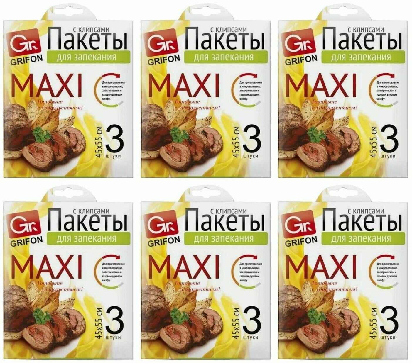 Пакеты для запекания Grifon Maxi с клипсами 45 х 55 см 3 шт
