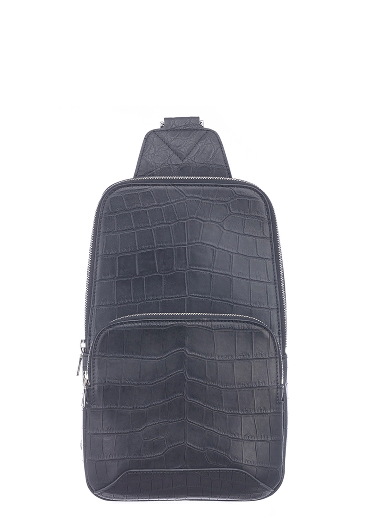Слинг выполнен из высококачественной кожи крокодила итальянского производства черного цвета. Регулируемый ремень обеспечивает возможность настроить сумку для ношения с левой или правой стороны, а внешний карман на надежной молнии обеспечивает быстрый доступ к самому необходимому. Классический дизайн подчеркивает благородный цвет и уникальный рисунок кожи.
