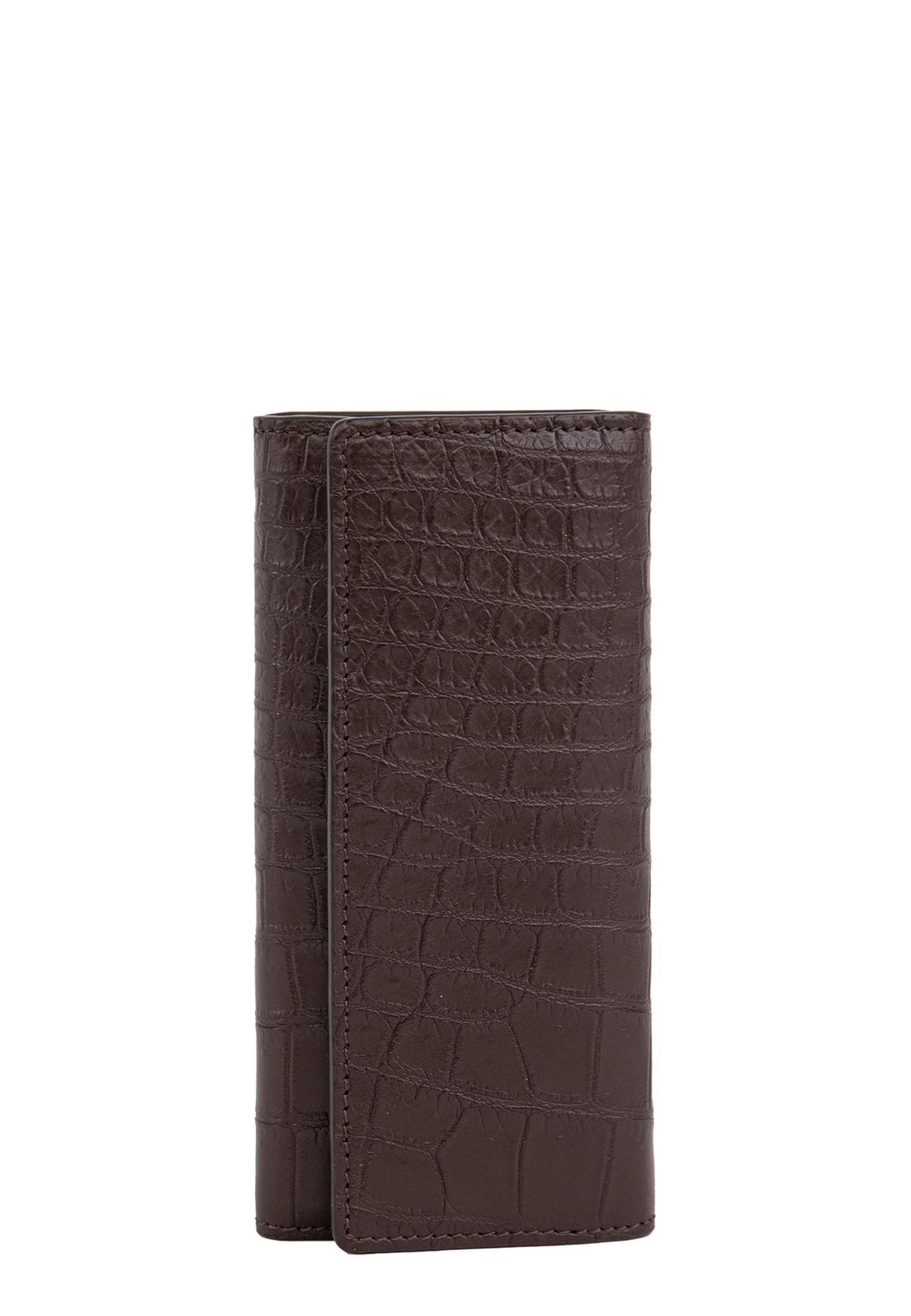 Удобная и надежная ключница темно-коричневого цвета выполнена из экзотической кожи крокодила. Кожа из Италии - традиционный золотой стандарт премиум-качества. Кроме великолепного внешнего вида ключница дополнена карабинами для ключей и карманом на молнии,что делает его практичным и компактным.