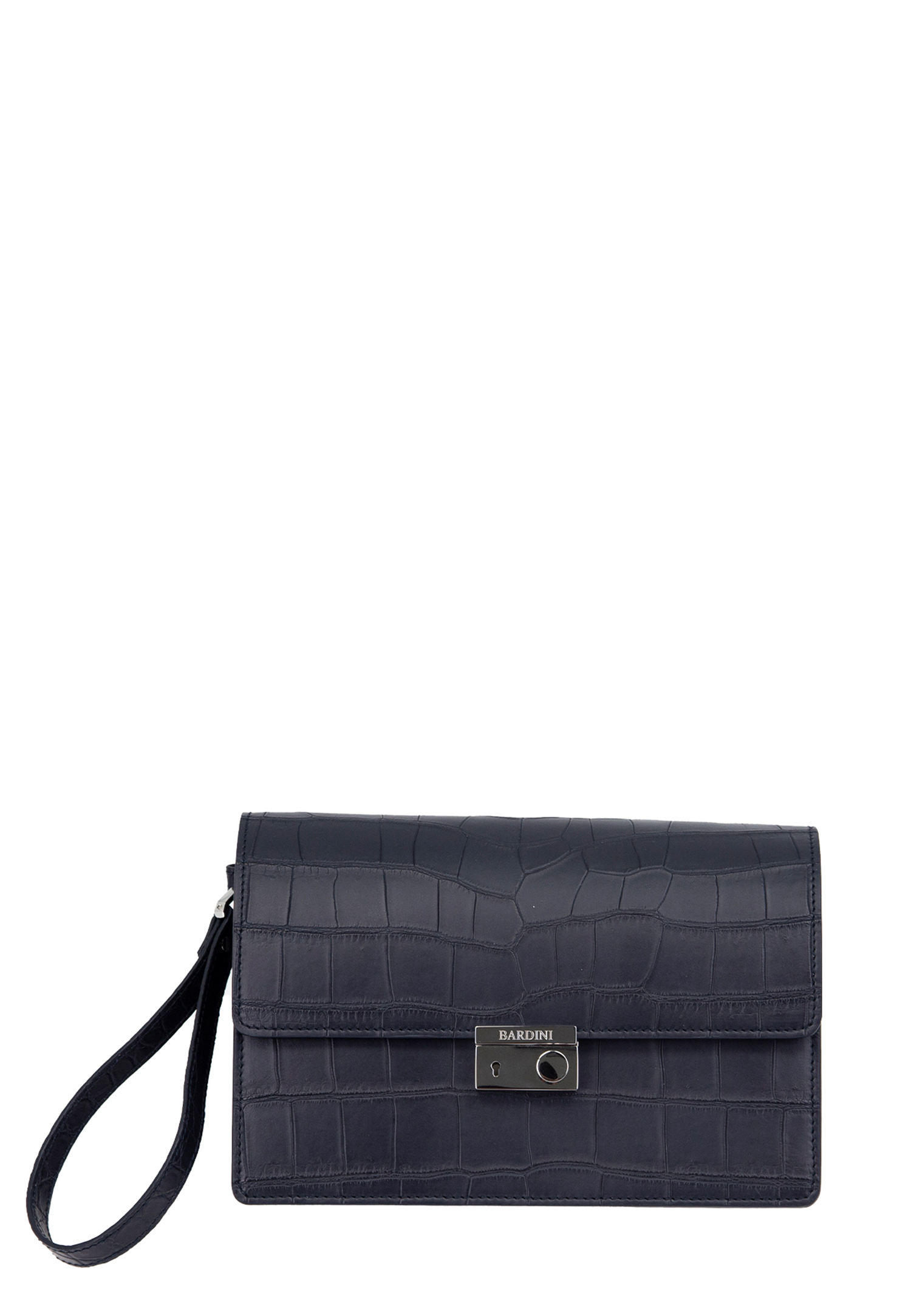 Для изготовления борсетки мастера использовали высококачественную кожу крокодила итальянского производства темно-синего цвета. Материал особенно прочный, поэтому изделие прослужит долго, не теряя первоначальный вид. Модель из коллекции Bardini закрывается широким клапаном на кнопочный замок.