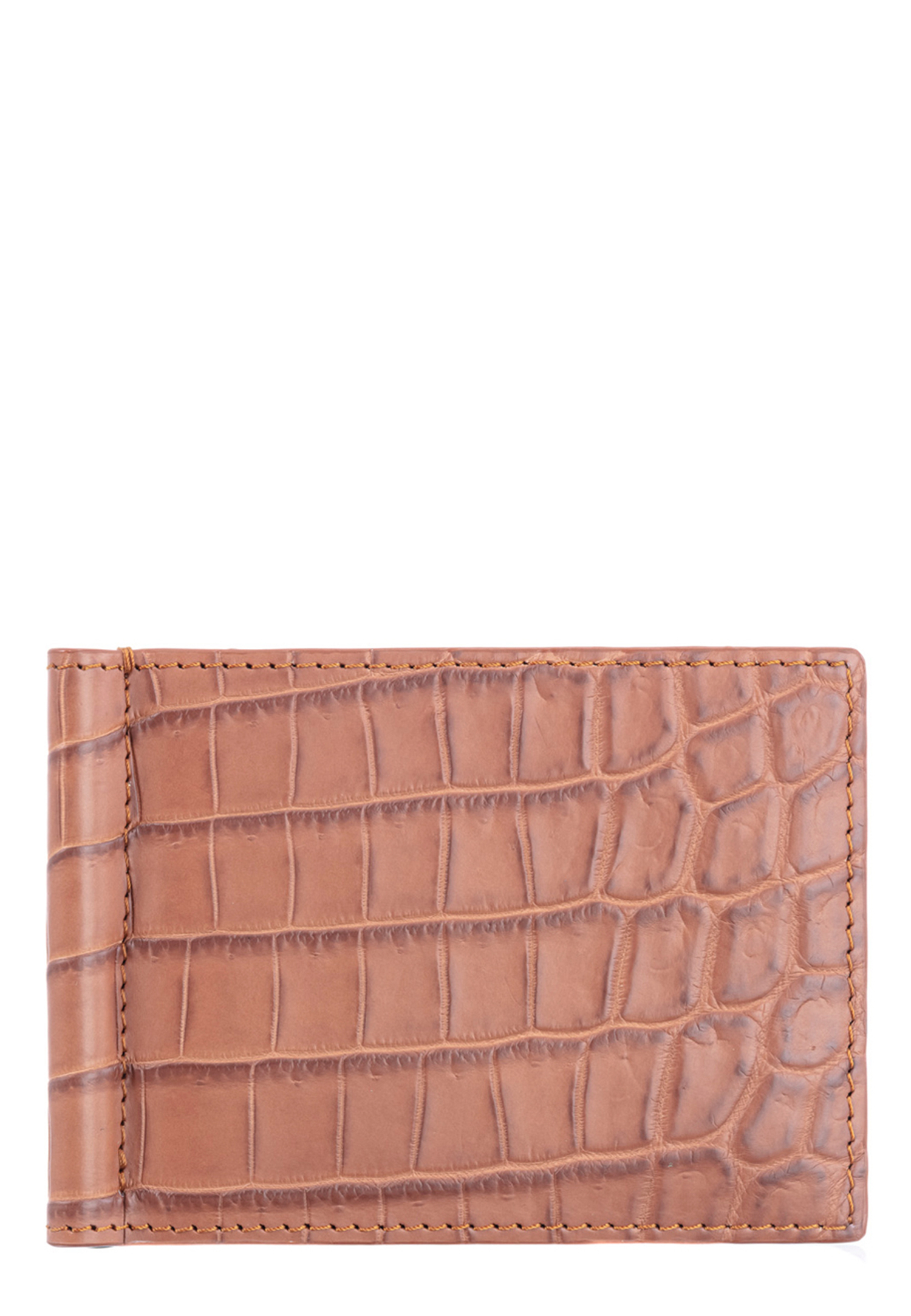 Удобный и надежный зажим для купюр светло-коричневого цвета выполнен из экзотической кожи крокодила. Кожа из Италии - традиционный золотой стандарт премиум-качества. Кроме великолепного внешнего вида зажим для купюр имеет несколько слотов для хранения карт.