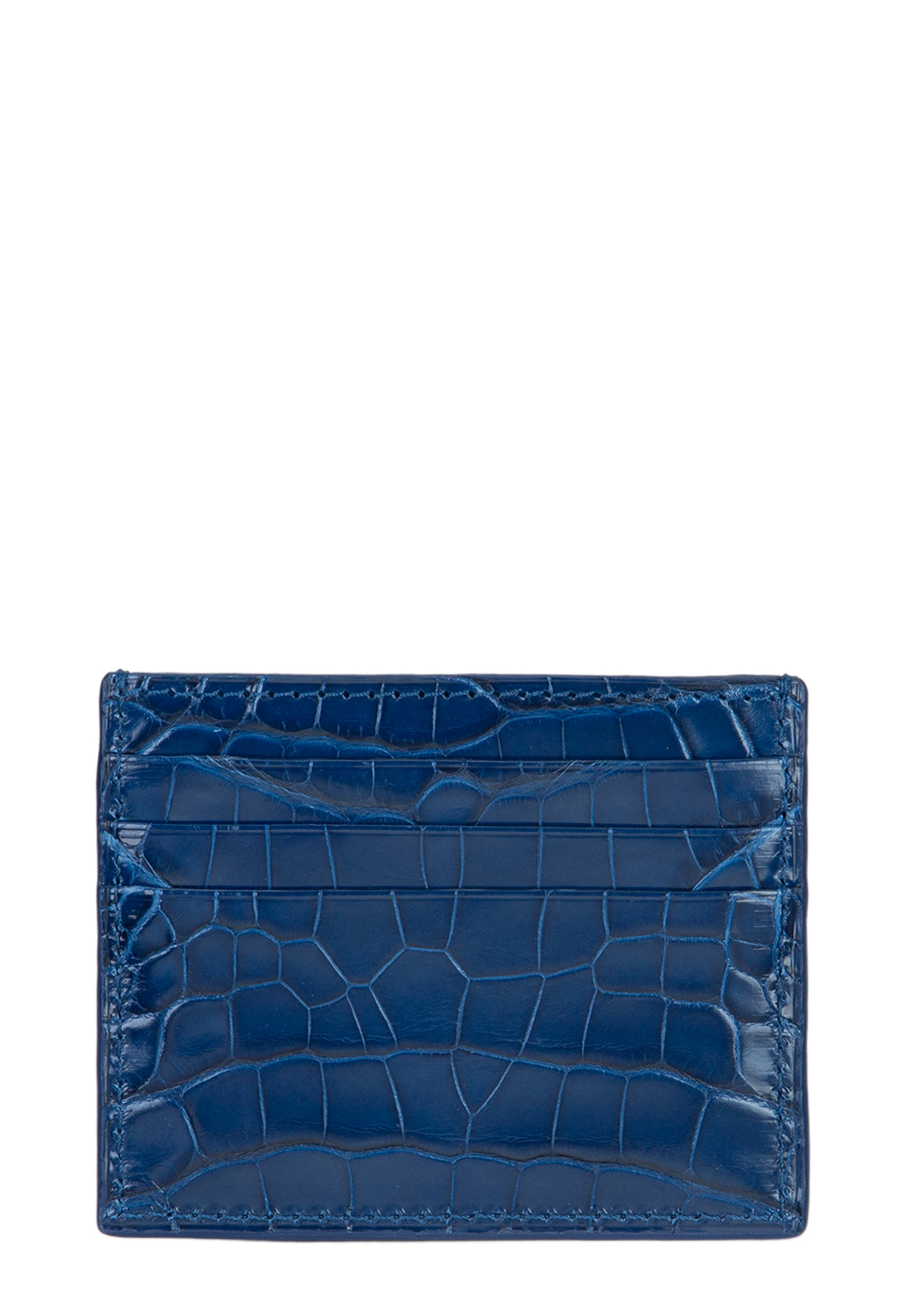 Визитница выполнена из высококачественной кожи крокодила итальянского производства темно-синего цвета. Модель отличается наличием 6 слотов для банковских карт и одним карманом для купюр. Классический дизайн подчеркивает благородный цвет и уникальный рисунок кожи.