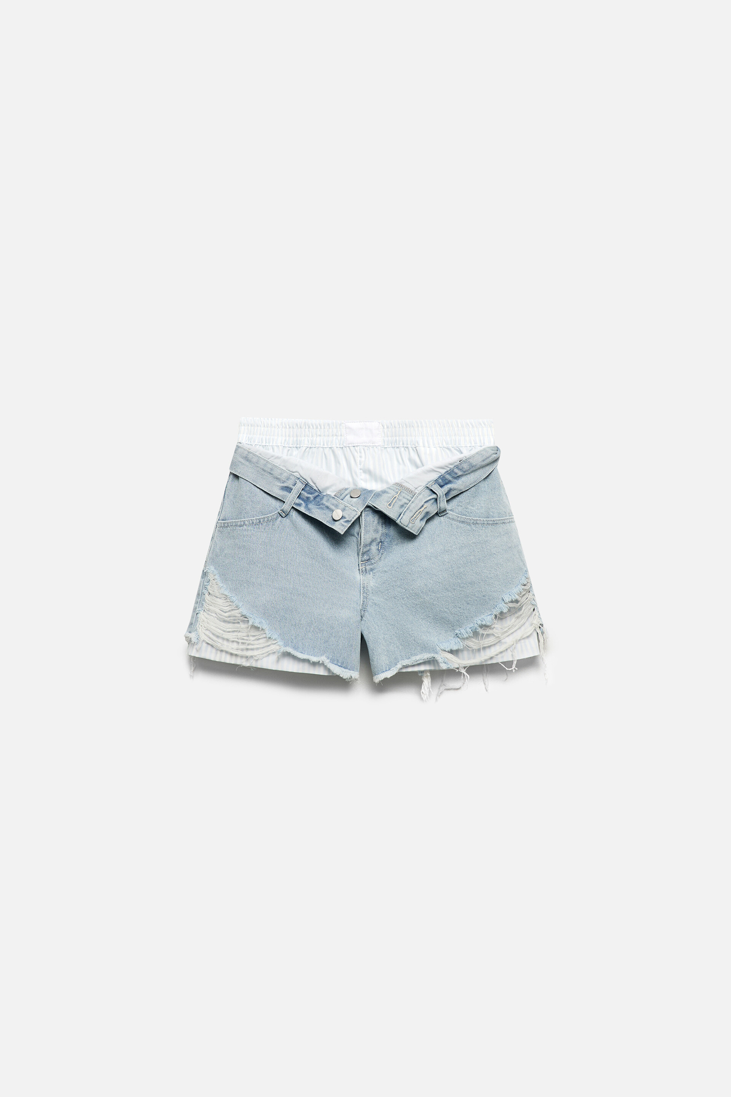 - Светло-голубые джинсовые шорты с вареным эффектом для комфортных образов на лето
