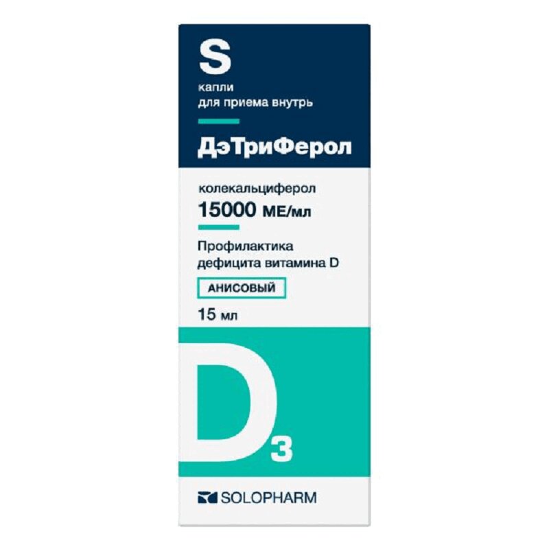 Капли для приема внутрь с анисовым вкусом в виде прозрачной или слегка опалесцирующей, бесцветной или слабо окрашенной жидкости с характерным запахом. Показания: - профилактика дефицита витамина D и заболеваний, связанных с его недостаточностью (рахита, остеомаляции); - лечение рахита; - комплексная терапия остеопороза различного генеза.
