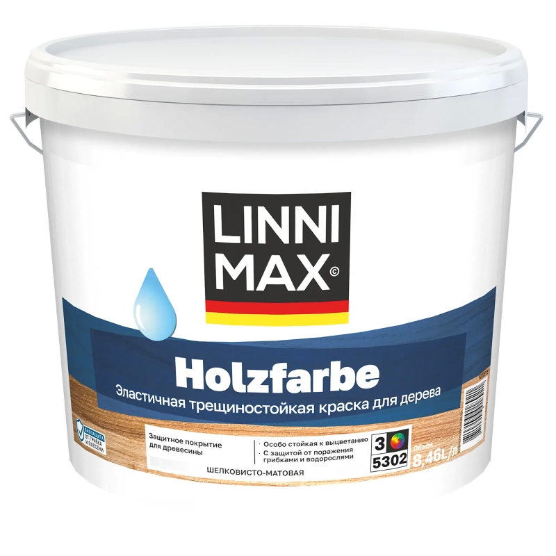 Краска фасадная Linnimax Holzfarbe шелковисто-матовая цвет белый база Б3 8.46 л
