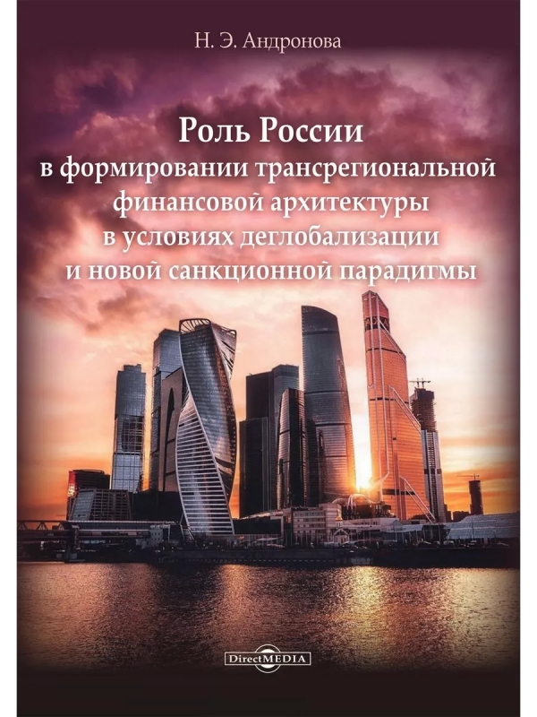 Роль России в формировании новой трансрегиональной финансовой архитектуры в условиях деглобализации . Монография посвящена исследованию происходящих в мировой финансовой архитектуре процессов, преобразовывающих ее в трансрегиональную финансовую архитектуру (ТФА) в условиях деглобализации и влияния новой коронавирусной инфекции (COVID-19). Рассмотрены теоретико-методологические основы, изучены императивы развития ТФА, а также выработаны научно-практические инструментарии по созданию кризисоустойчивой трансрегиональной финансовой архитектуры. В связи со сменой мирохозяйственного и технологического укладов на фоне пандемии COVID-19, специальной военной операции на Украине и последующими беспрецедентными "умными" санкциями со стороны "коллективного запада" в отношении российского финансового и других секторов экономики, а также нарастающим давлением США на КНР и другие государства автором определены стратегические направления и пути эффективного включения Российской Федерации в демократичную структуру трансрегиональной финансовой архитектуры с новым цивилизационным укладом и перемещением "мастерских мира" в Росси