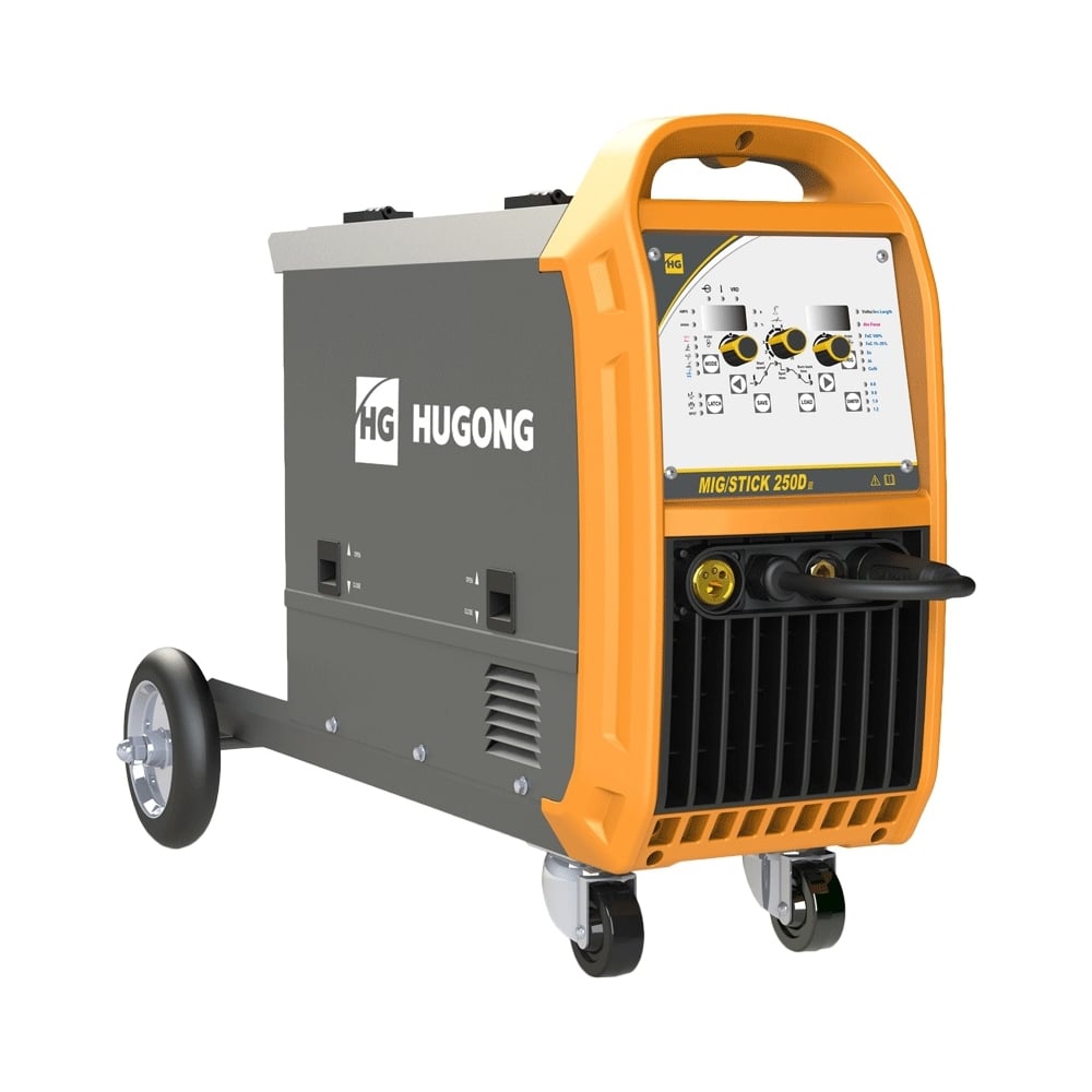 HUGONG MIG/STICK 250D III - Промышленный синергетический инверторный сварочный полуавтомат, идеальные сварочные швы. Данный аппарат имеет защиту от скачков напряжения. Высокая стабильность сварки в реальном времени, простое интуитивно понятное управление сварочными параметрами. Подходит для сварки нелегированных, низколегированных и высоколегированных материалов. Данный аппарат подойдет как профессионалу так и новичку. 4 - роликовый подающий механизм с мощным электромотором и алюминиевым литым корпусом. Встроенные программы для алюминия, малоуглеродистой стали, нержавеющей стали, МИГ-пайки (CuSi3). Идеален для сварки тонколистовых металлов.Преимущества Быстрое освоение оборудования, без длительного специального обучения Отличное перекрытие зазора Быстрая сварка без подрезов, брызг и доработок Быстрая корректировка изменений вылета электрода (проволоки) Контролируемая сварка при меняющемся зазоре Стабильная сварочная дуга Сварка в любых пространственных положениях Сохранение и загрузка программ Сварка тонких материалов Функция Burn Back Встроенные программы упрощают формирование и контроль сварочной ванны Мощный 4 роликовый механизм подачи проволоки