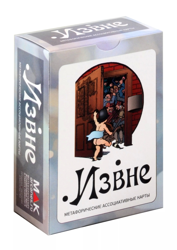 Метафорические ассоциативные карты «Извне» это набор карт с сюжетами социальных связей. Карты ориентированы на понимание своей роли в окружающем мире, осмысление и принятие происходящих процессов.