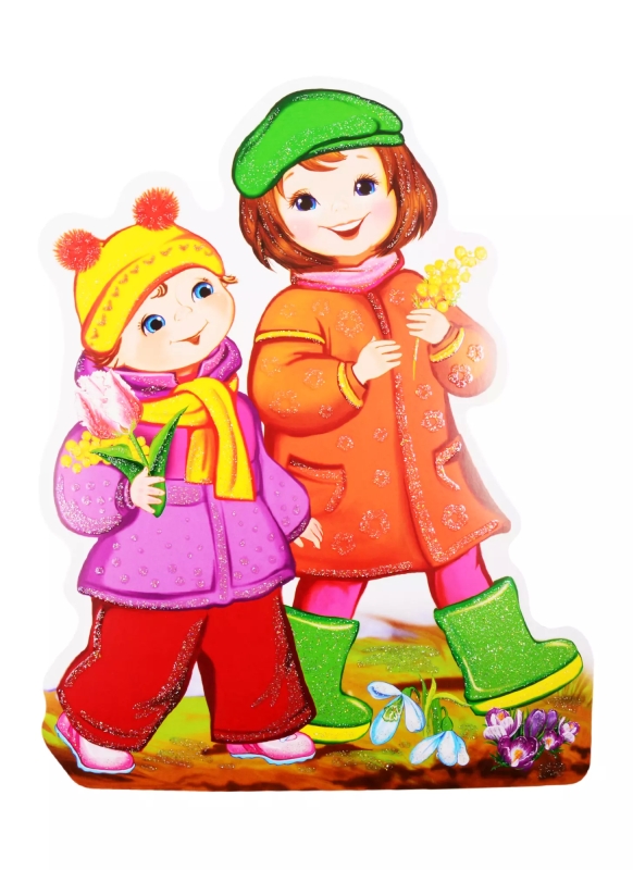 Плакат вырубной "Дети с весенними цветами"; Карапуз, 2021