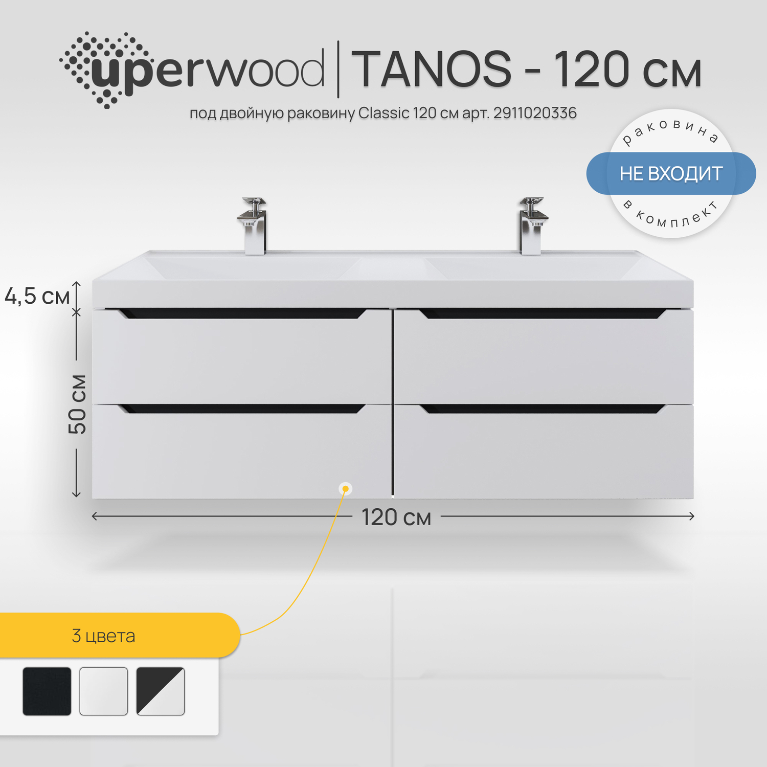 Тумба под раковину Uperwood Tanos 120 см 2910203303 подвесная, белая, графит