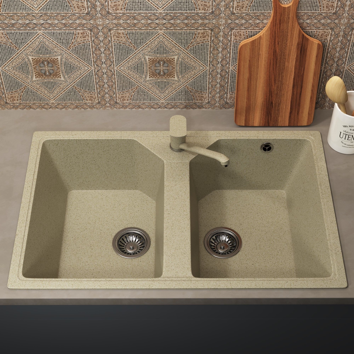 Кухонная мойка Uperwood ECON UPD-402-002 77 см 2 чаши, бежевая матовая