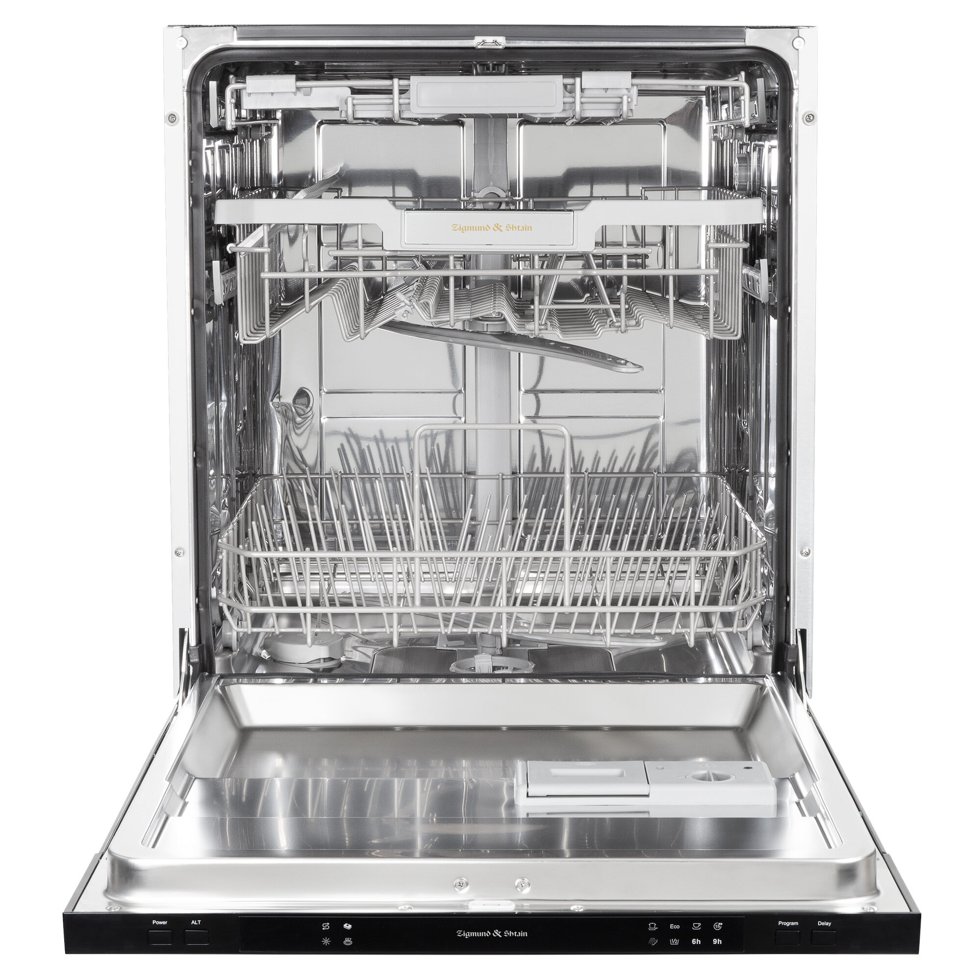 Посудомоечная машина Zigmund & Shtain сочетает в себе компактность, многофункциональность, экономию и качество. ПММ легко отмоет 14 комплектов посуды, тщательно ополаскивает поверхность столовых приборов, не оставляя следов моющих средств. Несмотря на многофункциональность, имеет простую панель управления с интуитивно понятным интерфейсов. Встраиваемая техника гармонично вписывается в современный интерьер кухни и экономит не только воду и ваше время, но и место даже на небольшой по площади кухни.Достоинства посудомойки:5 встроенных программ под любые потребности пользователя исходя из времени, типа посуды и экономии электроэнергии:интенсивная (60°С, 169 мин)60 минут (60°С, 60 мин)стандартная (46°С, 178 мин)быстрая (45°С, 147 мин)полоскание (11 минут)Функция отложенного старта до 9 часов и тихая работа дает возможность использовать посудомойку в ночное время. Вы также можете запланировать окончание процесса мытья к вашему приходу домой.Индикатор нехватки соли или ополаскивателя вовремя предупредит о необходимости пополнения.Высота корзин регулируется, чтобы вы могли разместить на нижней корзине объемную посуду, например, кастрюли.Отдельная корзина для столовых приборов дает возможность легче, быстрее и оптимальное разложить предметы для качественной обработки и удобной загрузке.Оптимальное расположение корзин гарантирует эффективный и качественный результат.Расход воды на цикл составляет 9 литров, что окупит стоимость техники уже через год пользования.3 независимых разбрызгивателя эффективнее всего производят очищение посуды с минимальными тратами воды и электроэнергии.Вам не обязательно дожидаться, пока посудомоечная машина загрузится целиком. Функция половинной загрузки позволяет указать, на какой корзине располагается посуда и экономно обработать нужный участок.Вы сможете доложить посуду даже после запуска программы мытья, не нарушая запрограммированную работу.