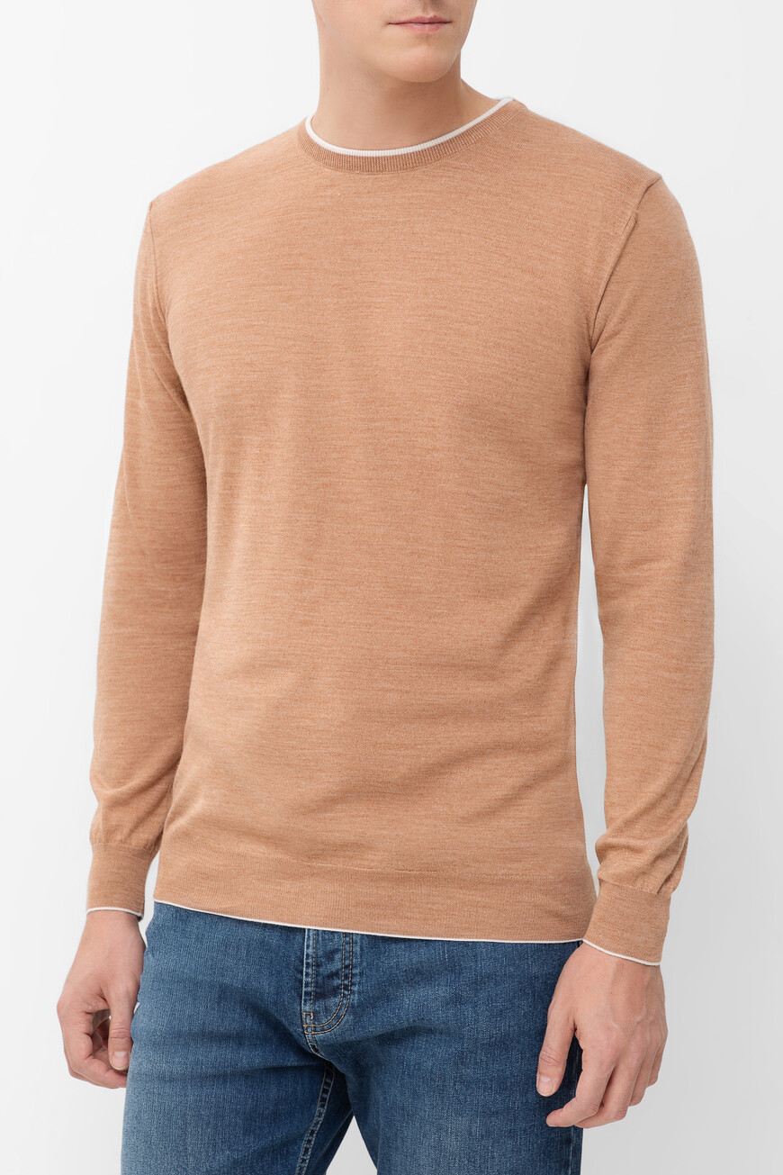 Шерстяной свитер Emiliano Zapata изготовлен из трикотажа карамельного оттенка. Кулирный трикотаж из шерсти не колется и практически не ощущается на теле. Свитер теплого светлого оттенка с белым окантовочным принтом внесет разнообразие в цветовую палитру осеннего гардероба.