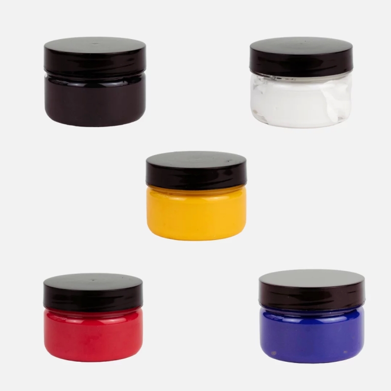 Специализированная краска для шелкографии на водной основе. Баночки 100 гр. хватает на 100-150 отпечатков трафарета 10х15 см., 30-40 отпечатков А4 формата, 20-30 отпечатков А3 формата. Количество отпечатков зависит от заполненности трафарета. Краска не имеет запаха, легко удаляется с сетки водой. Теме не менее рекомендуется использование краски в проветриваемом помещении и работать в перчатках.