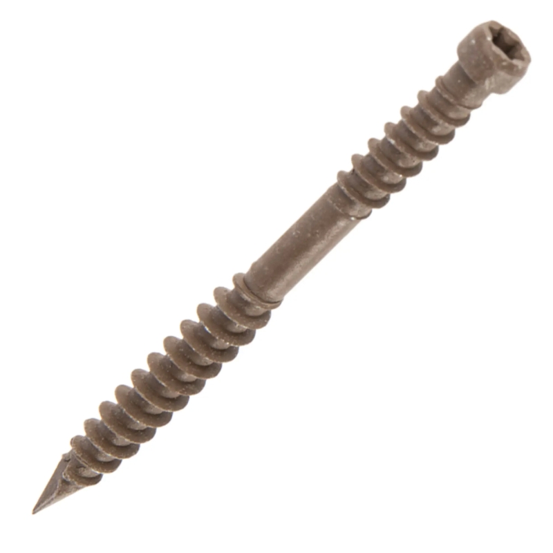 **Саморезы для террасной доски Гвозdeck** — это крепежные элементы, предназначенные для фиксации деревянных элементов, таких как доски пола. Они изготовлены из прочной углеродистой стали и покрыты надежным полимерным защитным слоем. Саморезы обеспечивают оптимальную фиксацию террасной доски к подсистеме благодаря специальному расположению бороздок и двум уровням резьбы. Эти саморезы подходят для использования как внутри помещений, так и на открытом воздухе, устойчивы к воздействию влаги, перепадам температур и другим агрессивным факторам окружающей среды. Они долговечны, удобны в использовании и практически незаметны на поверхности террасной доски.