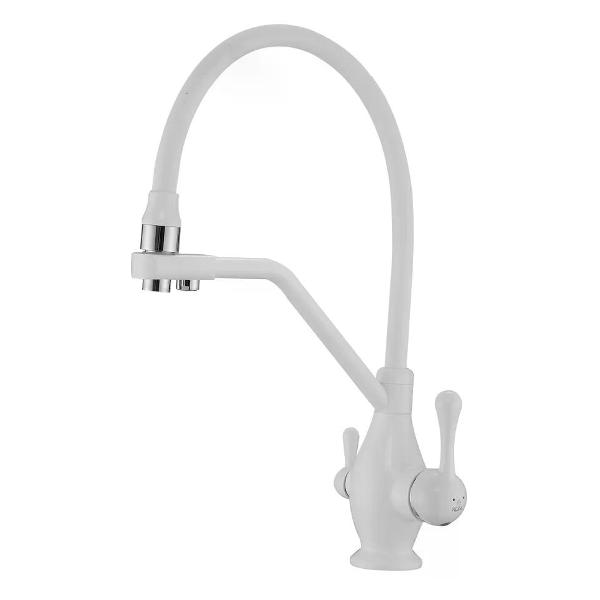 Смеситель для кухни Rose белый не только практичное решение для санузла, но и стильный элемент сантехники. Смеситель Rose R858 дополнит вашу кухонную мойку комфортом и уютом. Благодаря удобной конструкции однорычажных моделей, процесс регулировки температуры воды и интенсивность струи можно произвести одной рукой без особых усилий.